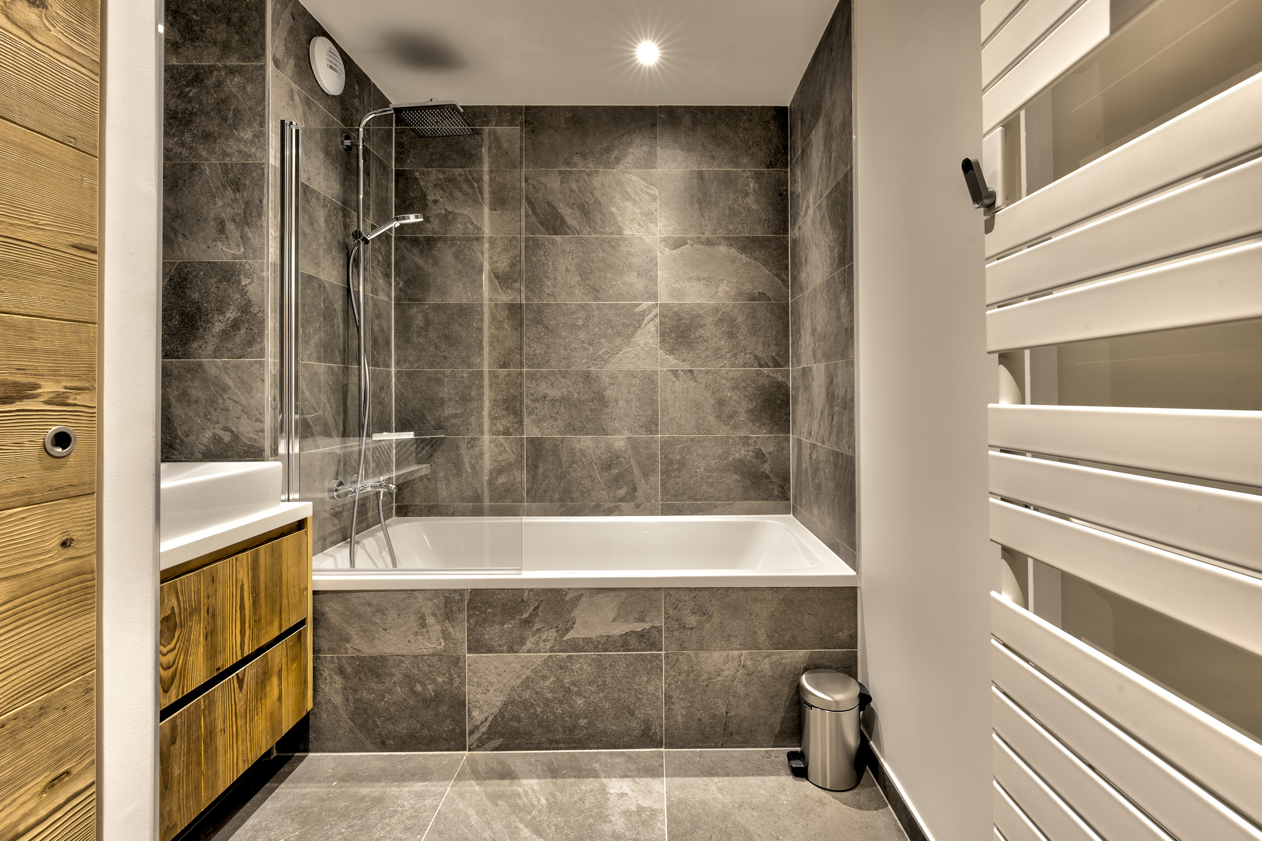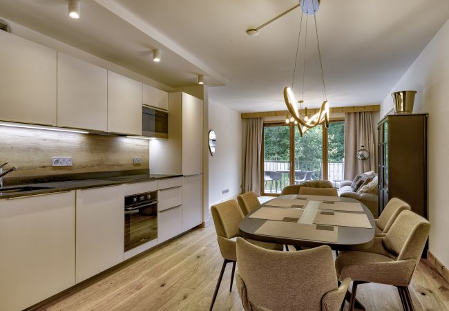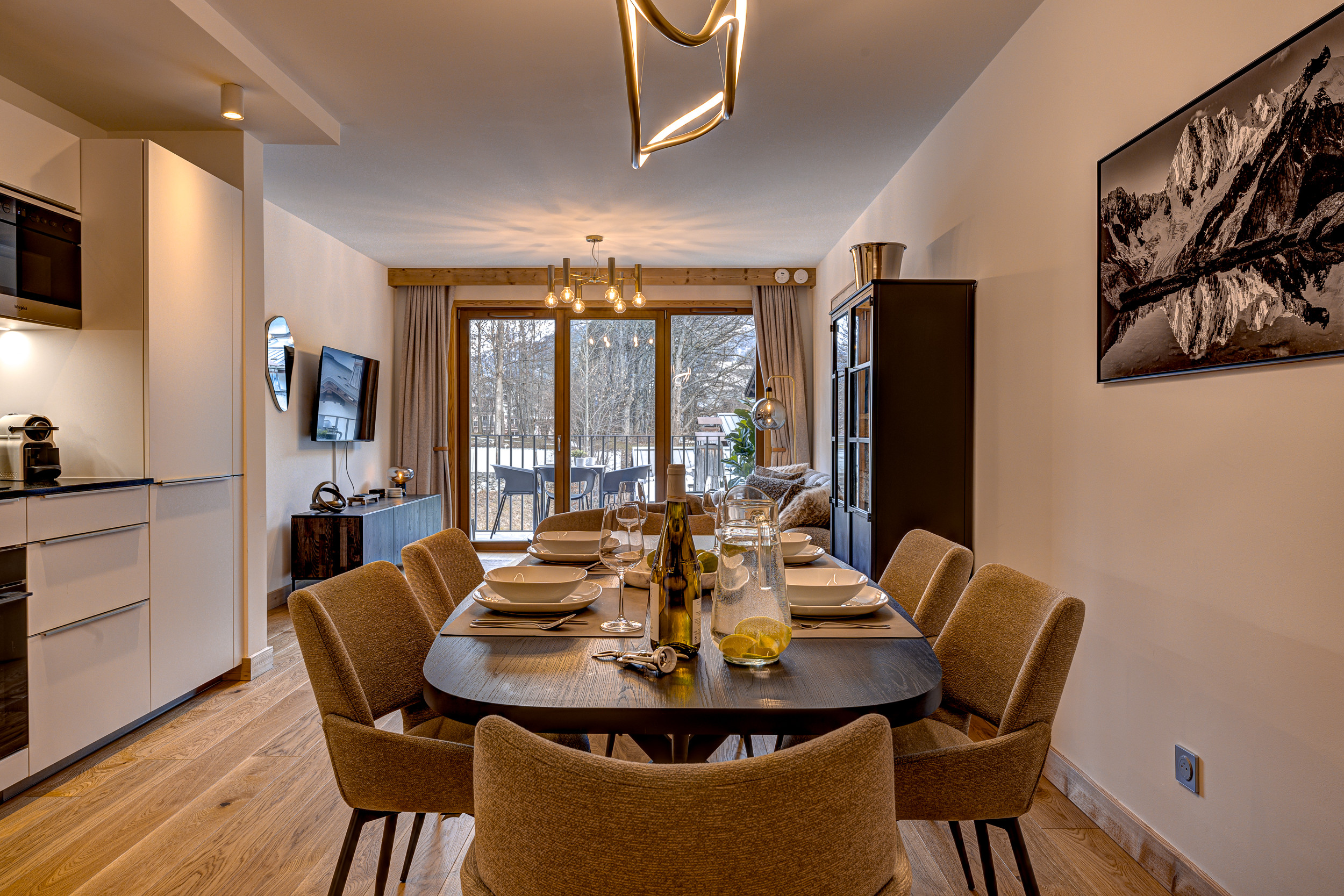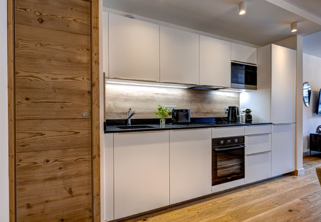 L'Aiguille 1 est une propriété chic située dans un endroit idéal. Cet appartement au rez-de-chaussée se trouve dans un immeuble situé dans un quartier calme, mais à proximité du centre-ville de Chamonix, ce qui signifie que les magasins, les restaurants et les bars sont tous accessibles à pied. De même, le domaine skiable et de loisirs des Planards se trouve à proximité, avec sa luge très populaire en toutes saisons. Les portes vitrées de l'espace de vie ouvert s'ouvrent sur un grand jardin privé qui est divisé entre une terrasse et de l'herbe, ce qui est rare dans un appartement de cette taille.