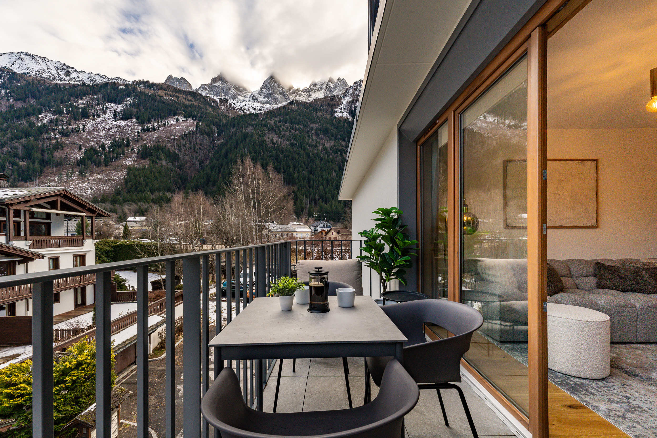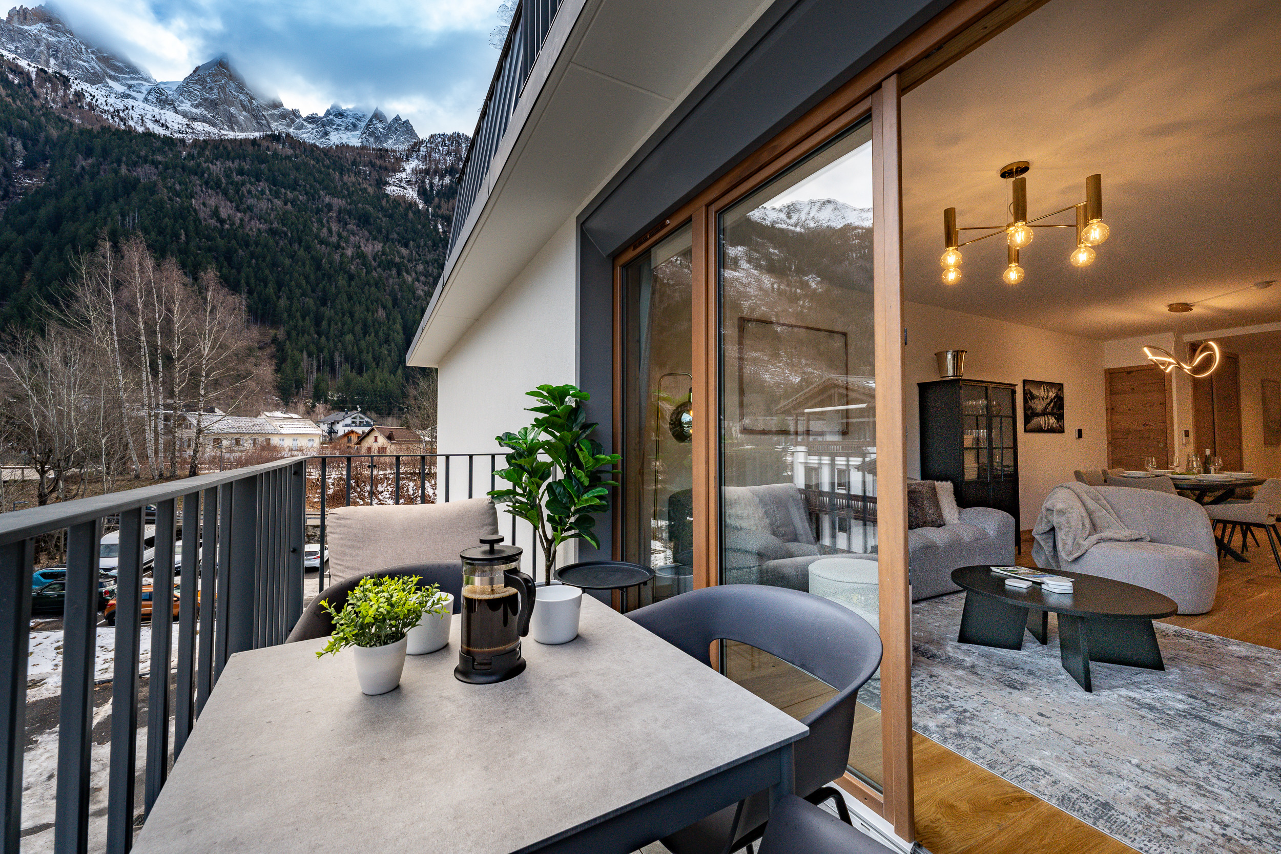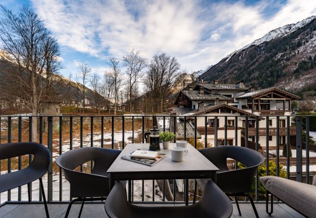 - Terrasse ensoleillée et orientée sud avec vue sur le Mont Blanc et l'Aiguille du Midi